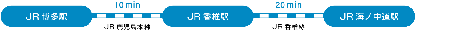 JR博多駅よりJR香椎駅で乗り換え、JR香椎線「海ノ中道駅」下車(香椎駅から約20分)→徒歩約5分
