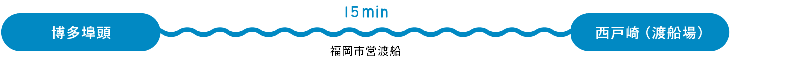 「ベイサイドプレイス博多」(博多ふ頭第1ターミナル)より「西戸崎港」下船(約15分)→徒歩1分